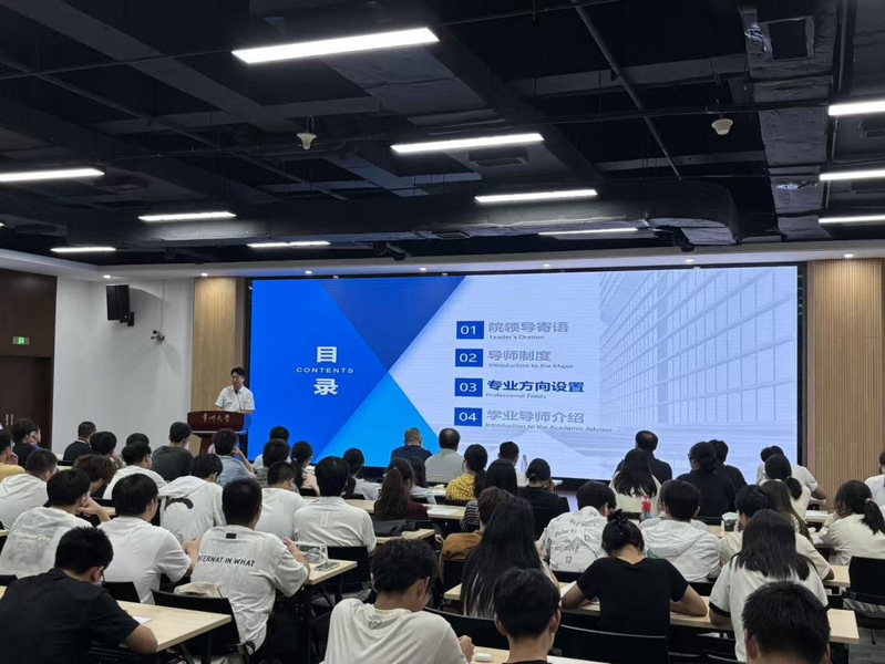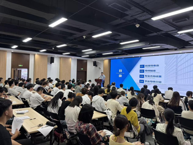 会议伊始,刘茂灿书记代表学院领导致辞。他结合个人求学与工作经历,勉励同学们尽快适应大学节奏,树立远大目标,夯实专业基础,提醒同学们保持学习热情,合理规划时间,为未来四年的成长打下坚实根基。同时,简要介绍了学院实施的导师制背景与土木工程专业的师资配置。在接下来的环节中,系主任夏平心就导师制的具体内容、专业方向设置以及高年级阶段分方向选课与评优保研做了进一步说明,帮助学生明确未来学习路径。随后进入导师自我介绍环节。各位导师依次上台,就自己的研究方向、教学课程及科研项目进行了简要阐述,并分享了许多实用学习建议和科研入门心得。老师们语言生动、内容充实,现场不时响起阵阵掌声,拉近了师生距离,也为学生后续选择心仪导师提供了充分参考。会议最后,新生们通过现场扫码方式提交了导师志愿选择,整场活动在积极有序的氛围中圆满结束。