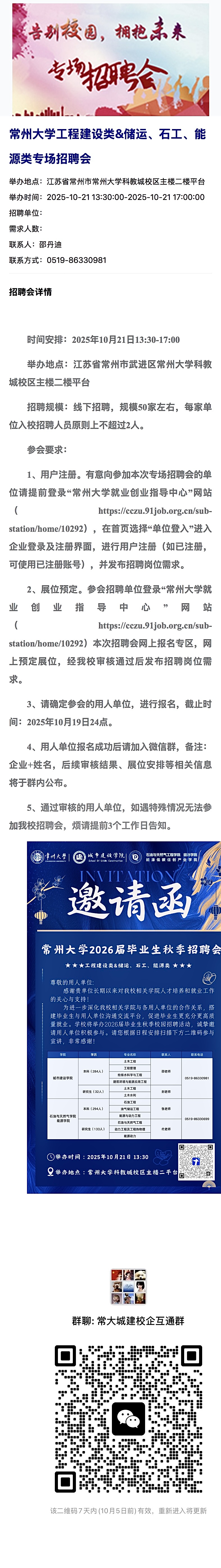 招聘速递[2025028]常州大学工程建设类&储运、石工、能源类专场招聘会