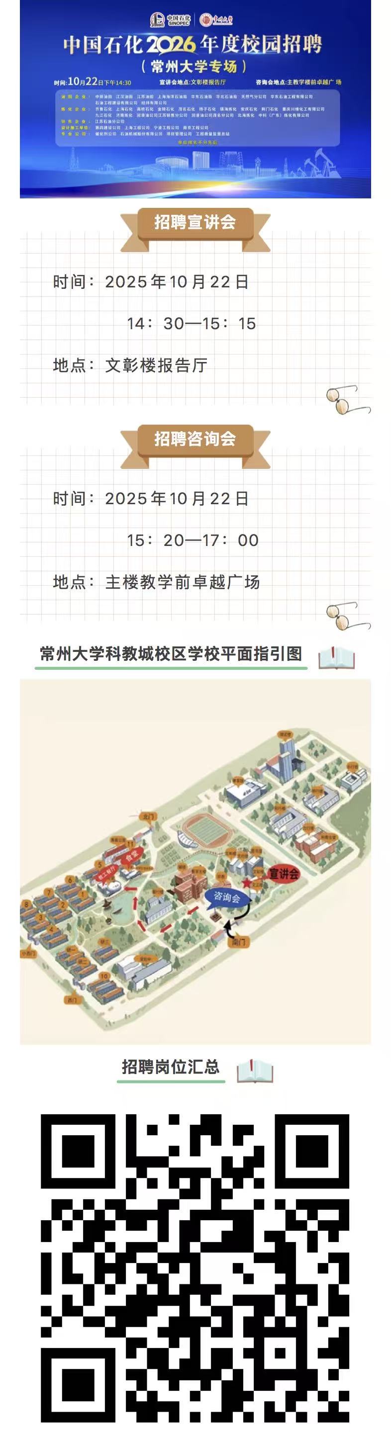招聘宣讲会[2025048]中国石化2026常州大学校园招聘专场