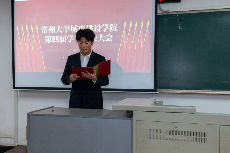 大会在庄严的国歌声中拉开帷幕。首先,由学生会主席王严上台宣读《城市建设学院学生会组织章程》,明确学生会组织的性质、宗旨、职责及运行机制,为今后学生工作的规范化、制度化奠定了基础。随后,第三届学生会委员会成员依次作工作报告,全面总结思想引领、学风建设、文体活动及志愿服务等方面的成效,深入分析存在问题,并对下一阶段工作作出部署。最后,大会以无记名投票方式差额选举产生了新一届学生会委员会委员和出席常州大学第十七次学生代表大会的代表。同时,大会通过提案征集形式,广泛收集了同学们对学院教学管理、后勤服务、校园文化等方面的意见和建议,充分体现了学生代表的责任担当和主人翁意识。