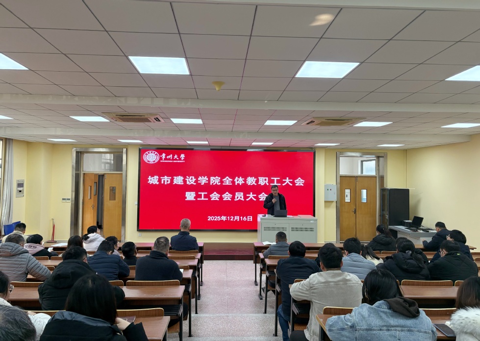 12月16日下午,城建学院在明行楼112室召开2025年全体教职工大会暨工会会员大会。学院党政领导及全体教职工参加会议。会议由学院党委书记刘茂灿主持。
