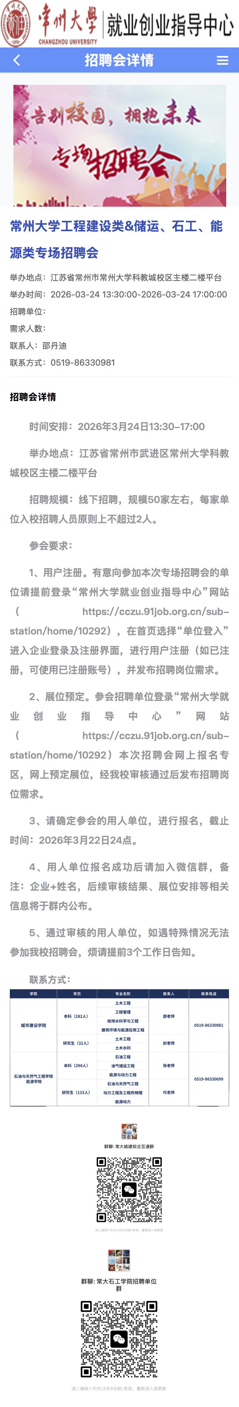 招聘宣讲会[2026011]常州大学工程建设类&储运、石工、能源类专场招聘会
