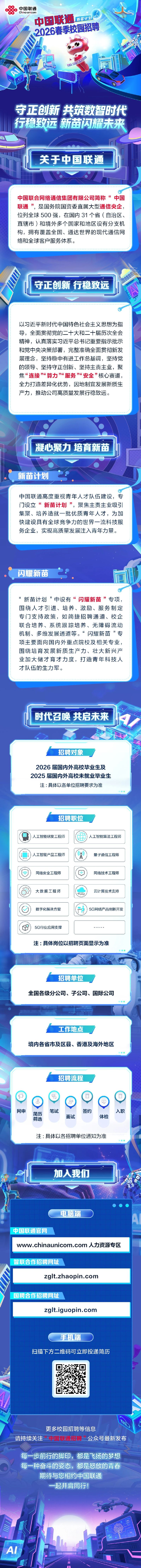 招聘速递[2026012]中国联通2026届春季校园招聘