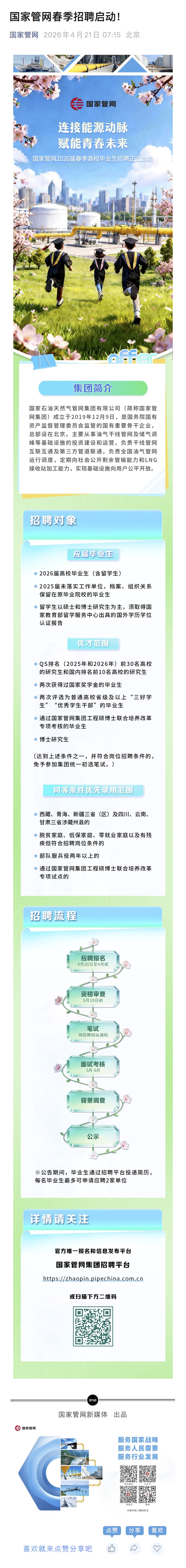 招聘速递[2026036]国家管网春季招聘